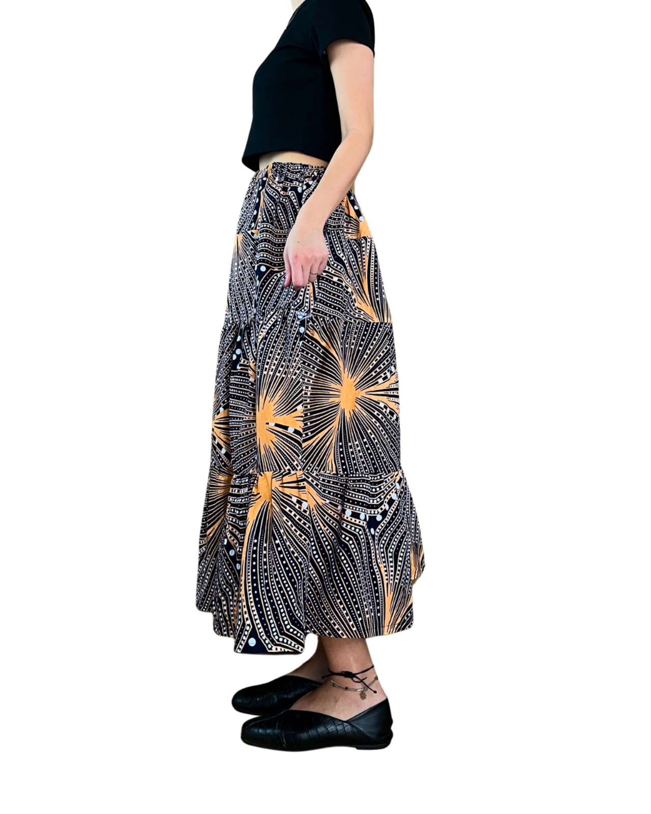 たっぷりの布が華やかに動きを魅せる、ロング丈のティアードスカート。
