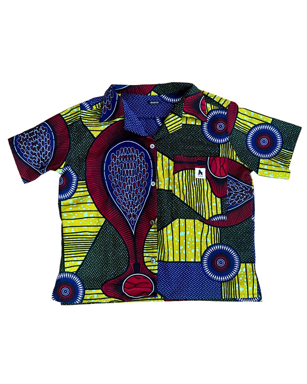 鮮やかなアフリカ布の大胆なアフロシャツ。