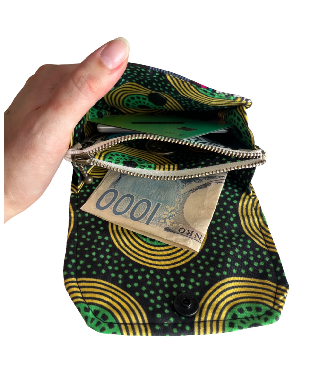 表地と裏地で別のアフリカ布を使用した、POPなデザインが特徴です。