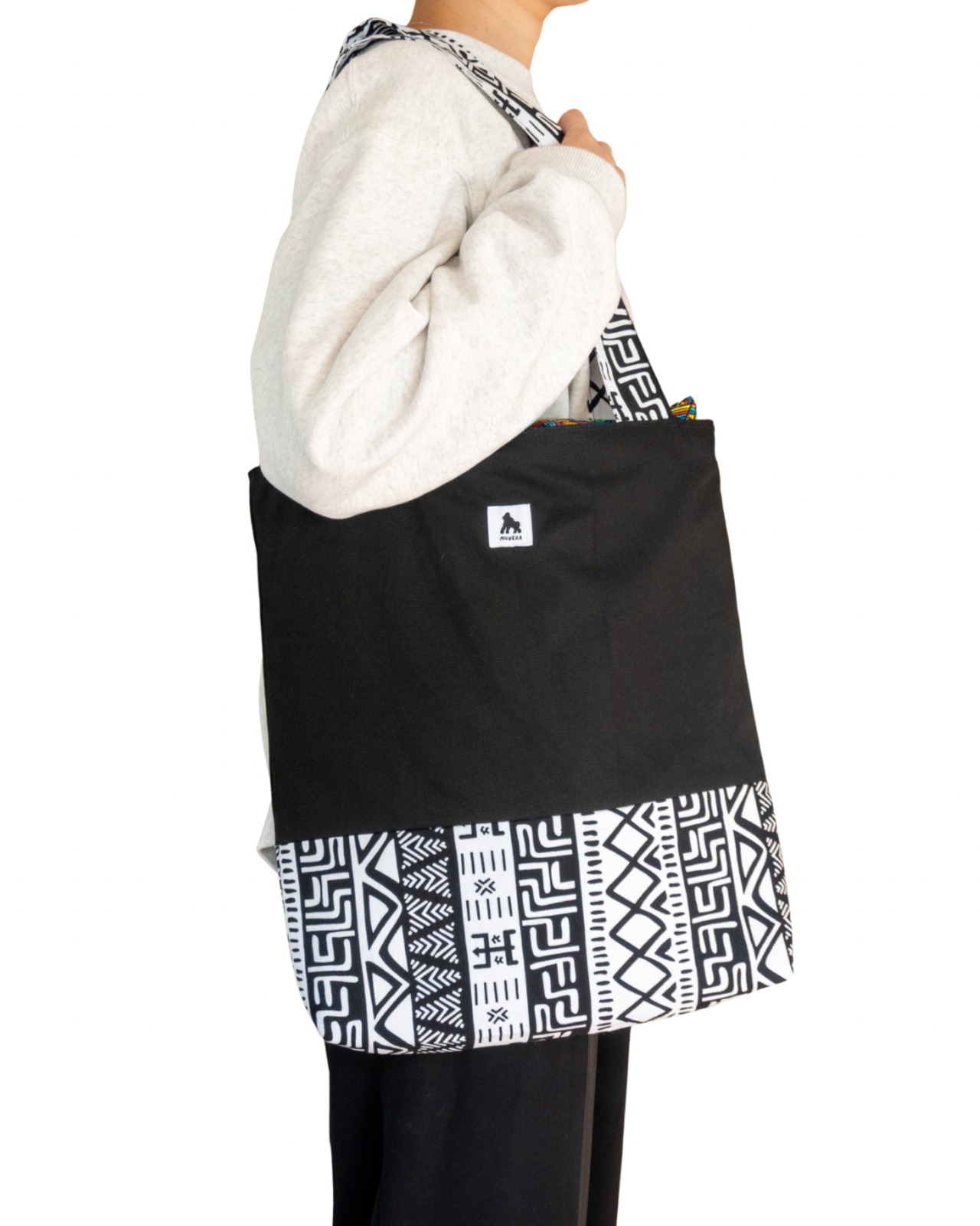 無地のキャンバス生地との切り替えが、アフリカ布を日常にフィットしやすくしてくれています。
