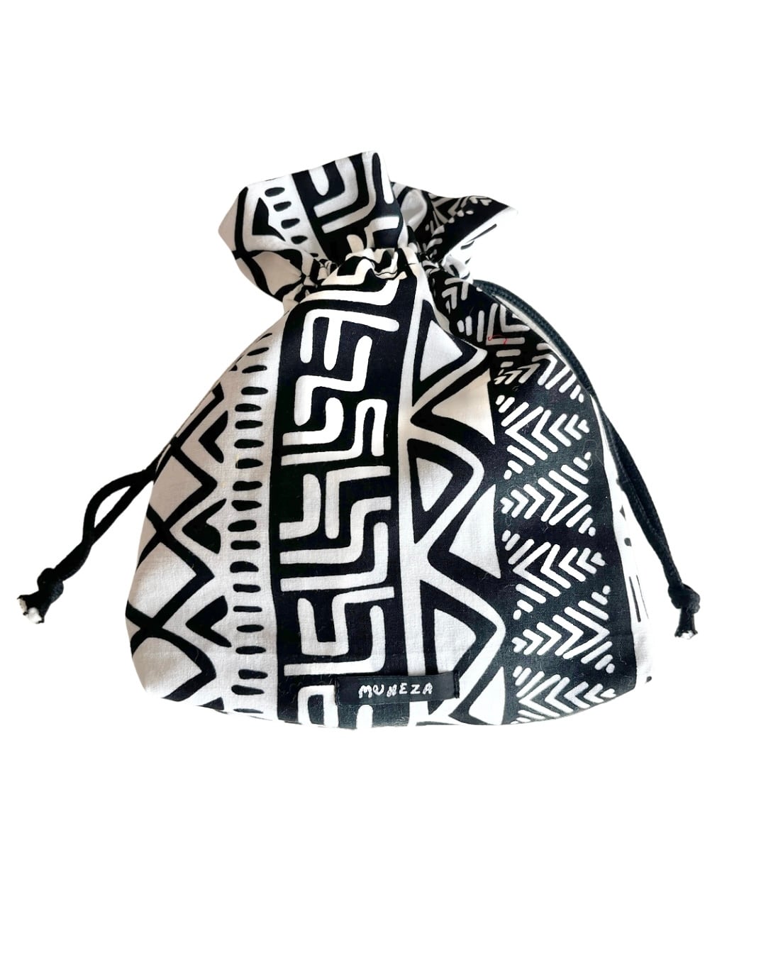 ベアトリスのマチあり刺繍巾着(ゼブラ)