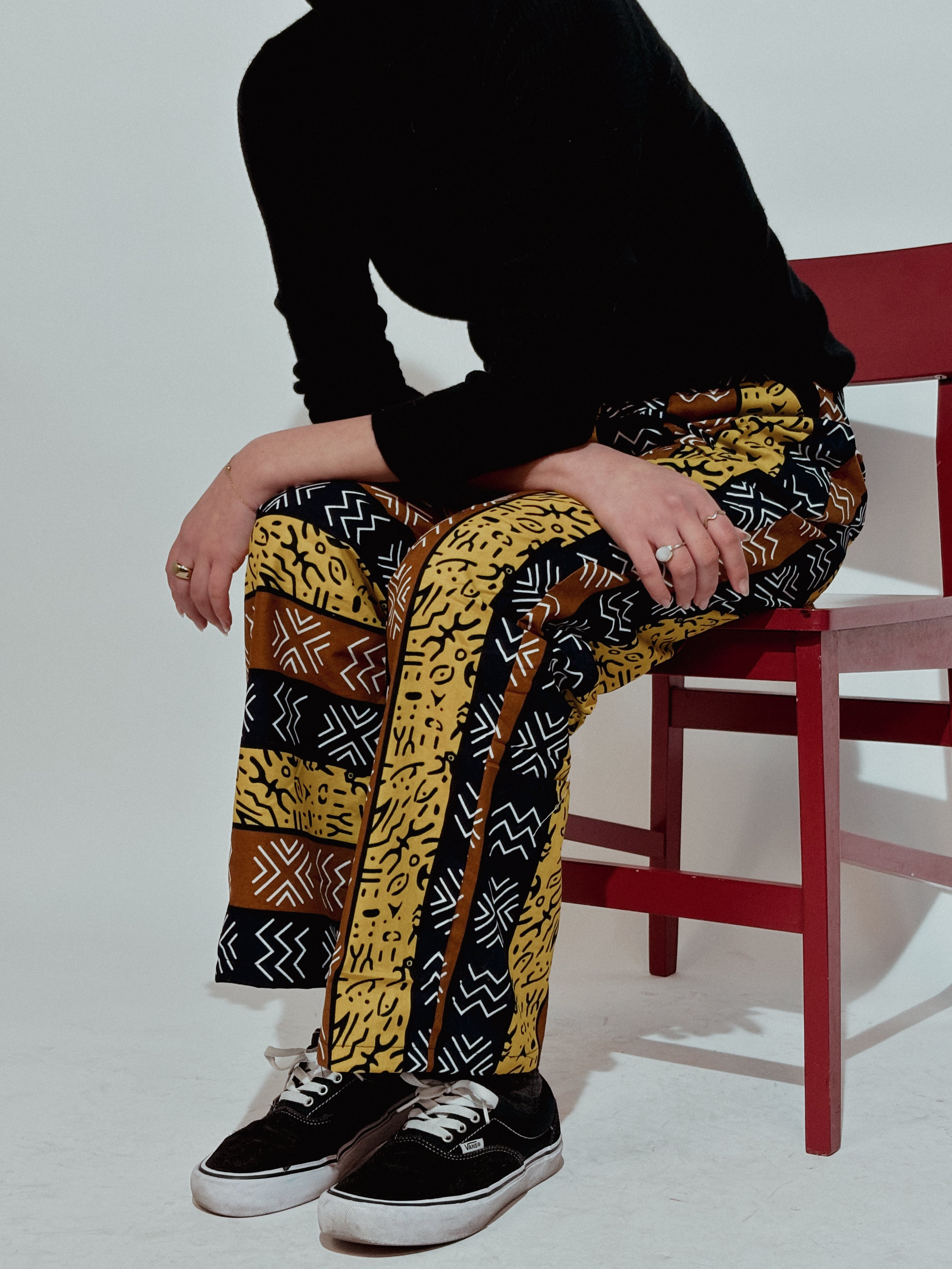 パッと目を引くアフリカ柄は、コーディネートの主役になってくれること間違いなし。